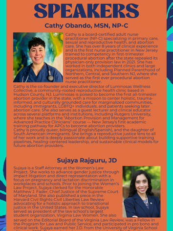 She has worked in both independent clinics and large organizations, including Planned Parenthood of Northern, Central, and Southern NJ, where she served as the first ever procedural abortion nurse practitioner. Cathy is the co-founder and executive director of Luminosas Wellness Collective, a community-rooted reproductive health clinic based in Hudson County, NJ. Luminosas is poised to become the first all-trimester abortion provider in the state, with a mission to center holistic, trauma-informed, and culturally grounded care for marginalized communities, including immigrants, LGBTQ+ individuals, and patients seeking later abortion care. She also serves as a guest lecturer and clinical educator across several platforms and institutions, including Rutgers University, where she teaches in the “Abortion Provision and Management for Advanced Practice Clinicians” course — New Jersey’s first academic training pathway for APCs to become abortion providers.